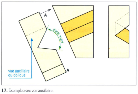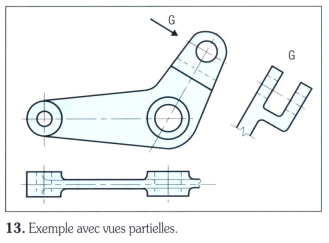 La forme des objets ne permet pas toujours une description aisée à partir des plans de projection usuels. Afin de simplifier la lecture et les tracés, la norme permet l'utilisation des vues auxiliaires : vue entière, partielle, demi-vue .... .