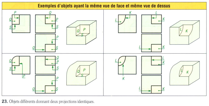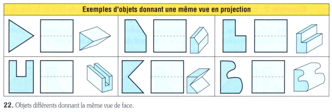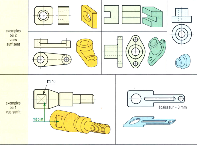 Trois vues suffisent en général pour définir un objet même complexe. Cas typiques: vue de