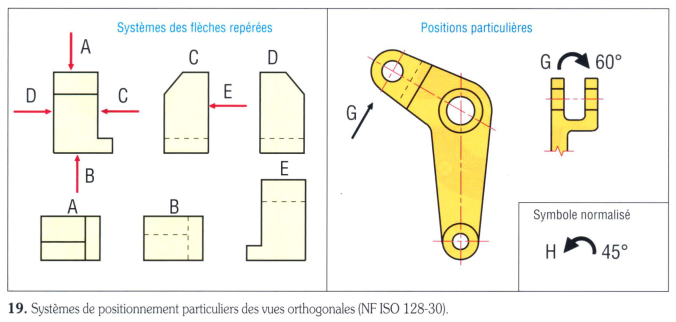 orthogonales et la position des vues qui en résulte. Le symbole normalisé correspondant est à