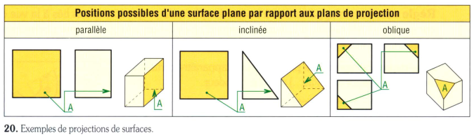 La description la plus générale utilise six plans de projections. Le plus souvent trois vues, par-