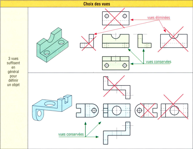 Objectif : avec un nombre minimum de vues, il faut avoir le maximum de définition et de clarté pour décrire les formes et les dimensions de l'objet.