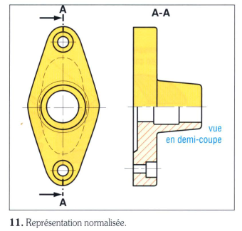 Les vues en demi-coupe sont particulièrement intéressantes dans le cas des pièces symétriques.