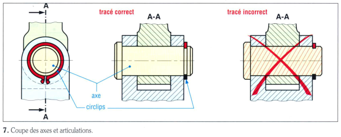 dessinées. Dans une section, seule la partie coupée est dessinée (là où la matière est réellement