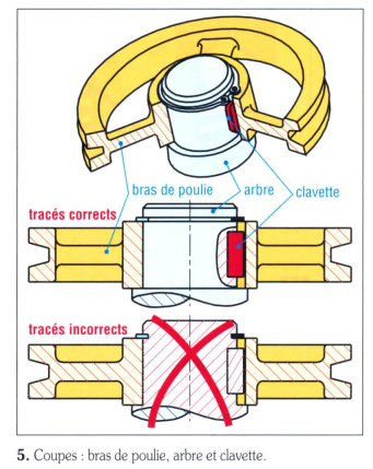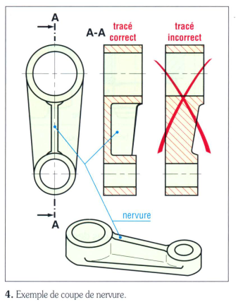 a) On ne coupe jamais des nervures lorsque le plan de coupe passe dans le plan de leur plus grande surface. La règle est la même avec les bras de poulie, de volant ou de roue.