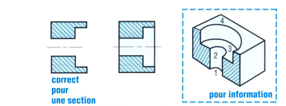 - Le motif des hachures ne peut en aucun cas préciser la nature de la matière de l'objet coupé.