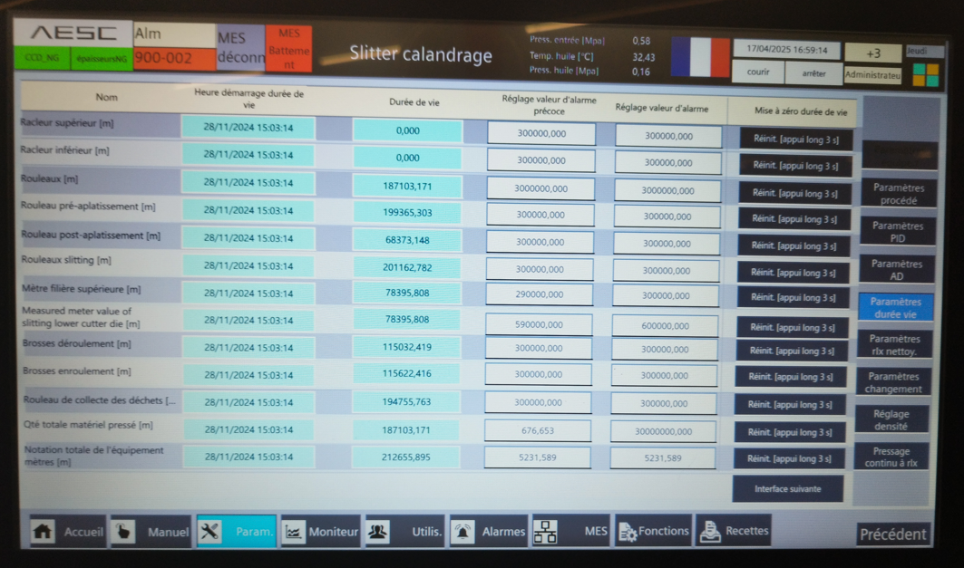 3.2 Relever des valeurs des salles Anode et Cathode en calandrage