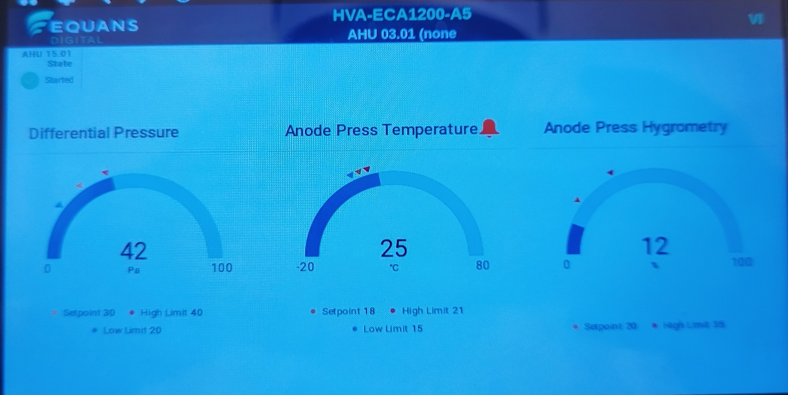 Relever des paramètres des conditions de salle Anode et Cathode :