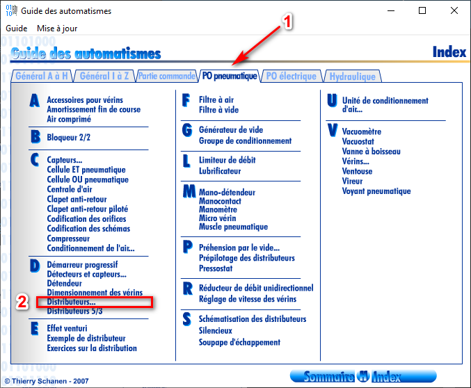 2. Ouvrir l'onglet PO Pneumatique, Sélectionnez Distributeurs et complétez le cours :