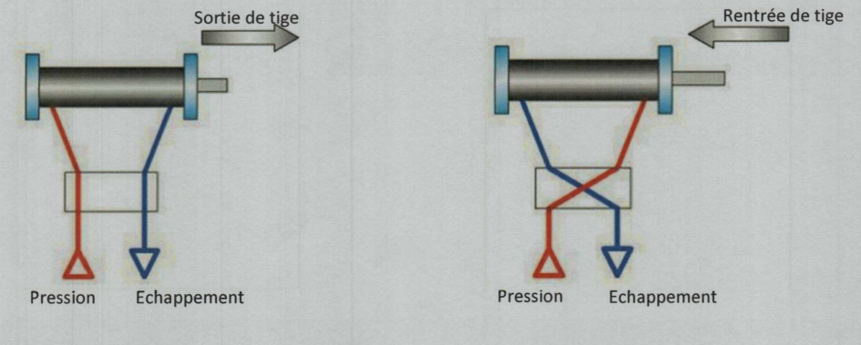 - Les chambres d'un vérin en fonctionnement, doivent être, alternativement mise à la pression et à l'échappement.