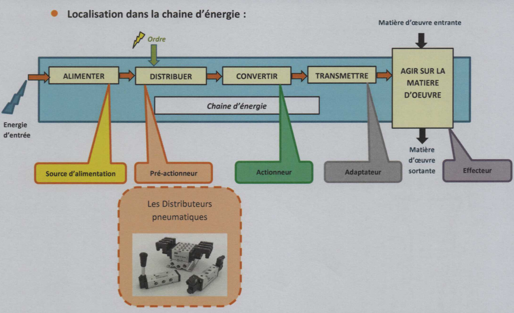 - Le distributeur est un pré-actionneur (Associé le plus souvent à un vérin).